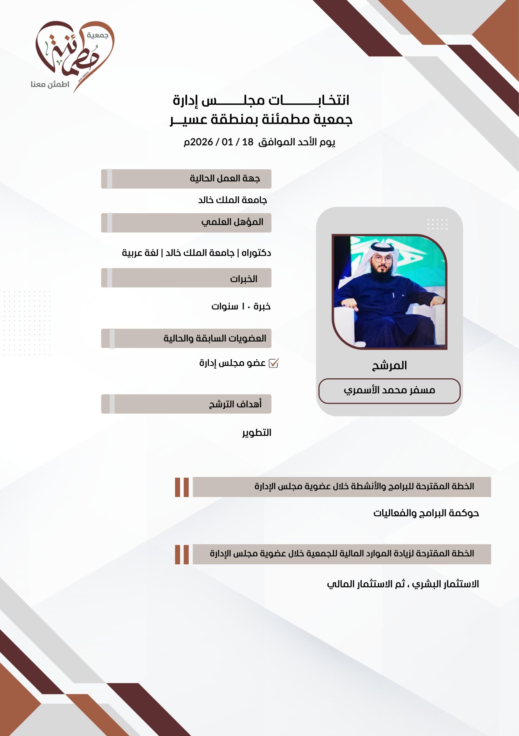 نطمح أن نكون مقدم الخدمة الأفضل في تعزيز القيم والسلوكيات الإيجابية والترابط المجتمعي في منطقة عسير